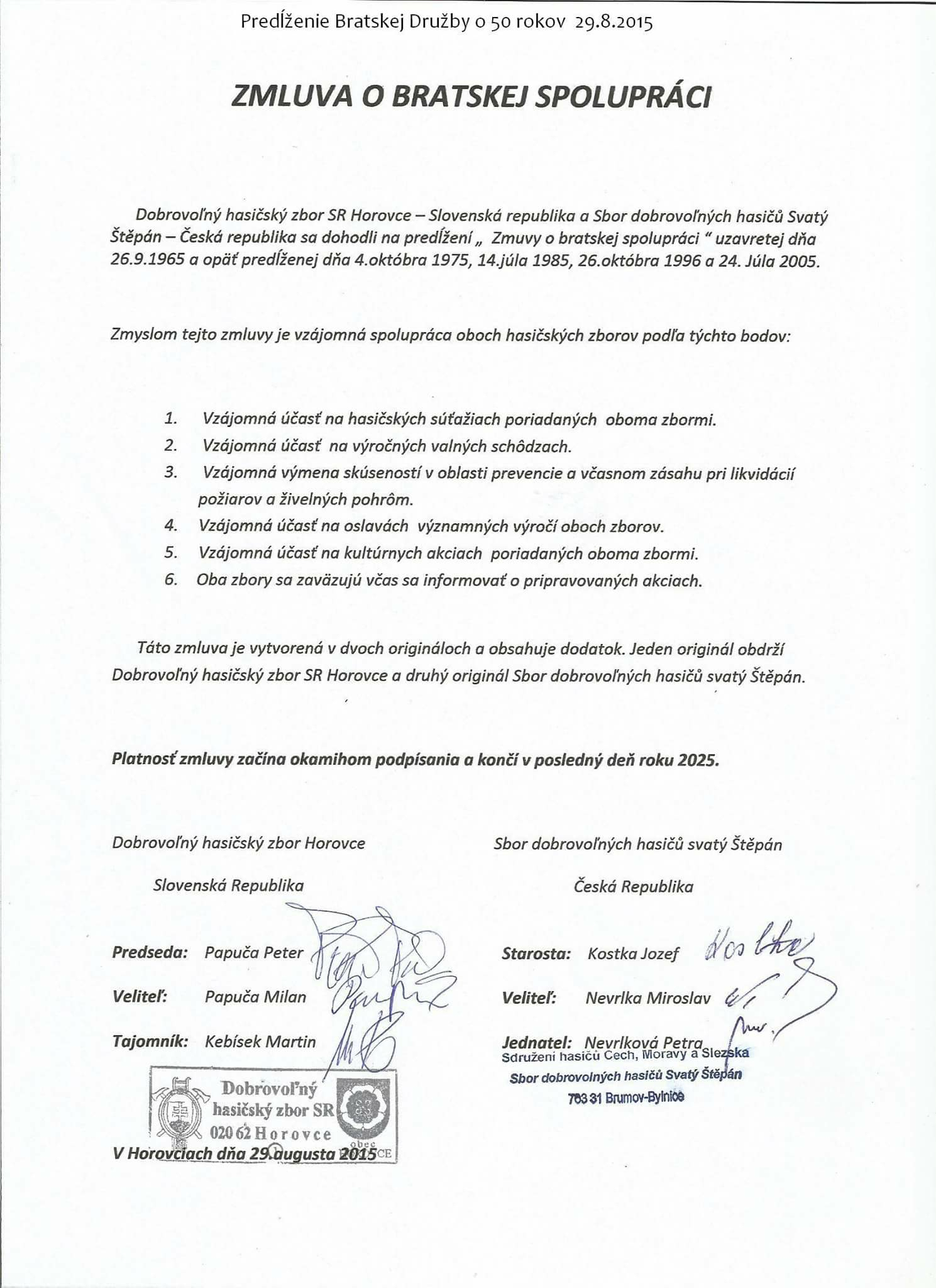 Dodatok ku "Zmluve o bratskej spolupráci"